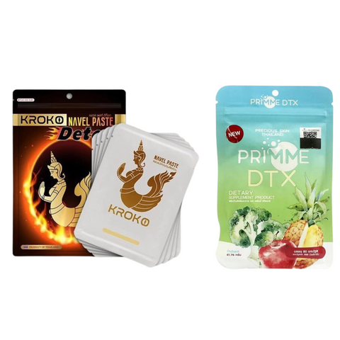 [Combo] Miếng dán tan mỡ bụng Kroko Navel Paste Detox - Viên Uống Giảm Cân Rau Củ Quả Precious Skin Primme DTX Dietary Supplement 60 viên