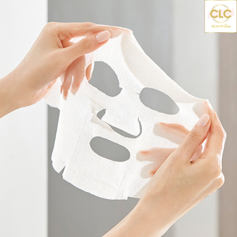 Mặt nạ được làm bằng len bông cotton tự nhiên nhẹ nhàng giữ chặt da, cung cấp huyết thanh để phục hồi da nhanh hơn.