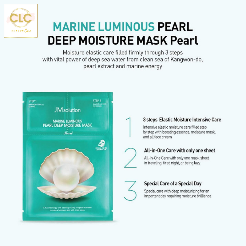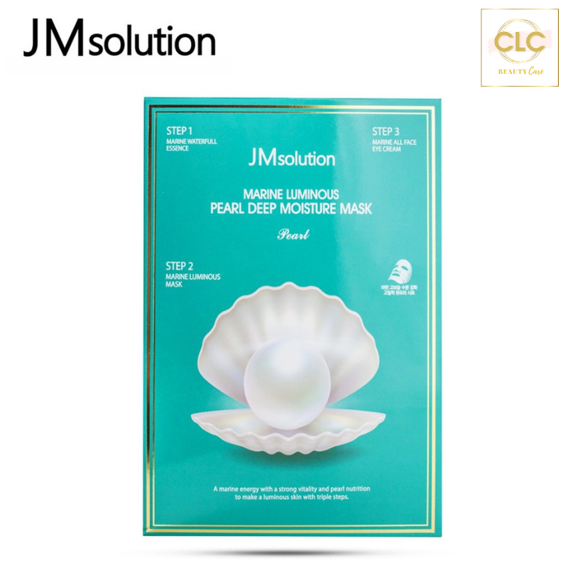 Mặt Nạ Dưỡng Ầm Sáng Da 3 Bước JM SOLUTION Marine Luminous Pearl Deep Moisture Mask Pearl từ Hàn Quốc có kết cấu dạng tinh chất với thành phần chính từ ngọc trai và nước khoáng biển sâu giúp da săn chắc và trắng sáng hơn.