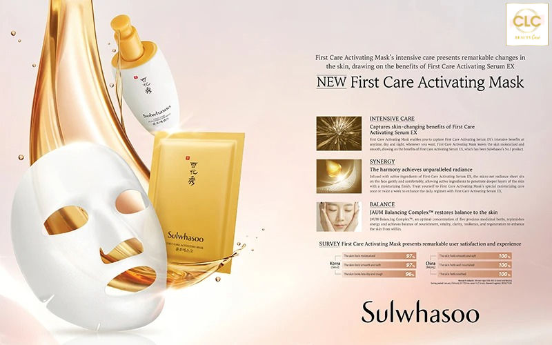 Mặt nạ chăm sóc cân bằng Sulwhasoo First Care Activating Mask Hàn Quốc giúp xoa dịu và thanh lọc da với Công nghệ màng lưới vi sợi, thấm đẫm tinh túy từ hợp chất JAUM balancing complex™, được điều chế để cải thiện sự cân bằng cho làn da.