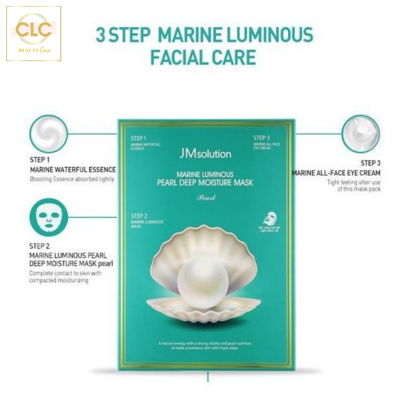 Mặt Nạ Dưỡng Ầm Sáng Da 3 Bước JM SOLUTION Marine Luminous Pearl Deep Moisture Mask Pearl từ Hàn Quốc có kết cấu dạng tinh chất với thành phần chính từ ngọc trai và nước khoáng biển sâu giúp da săn chắc và trắng sáng hơn.