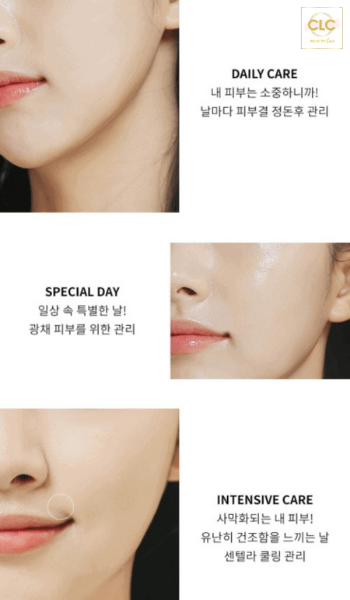 Chiết xuất rau má (Centella): giàu hàm lượng Saponin và Triterpenoid giúp tái tạo tế bào mới, khôi phục vết thương nhanh chóng. Làm dịu da, củng cố hàng rào bảo vệ da, giữ ẩm, ngăn ngừa mất nước.