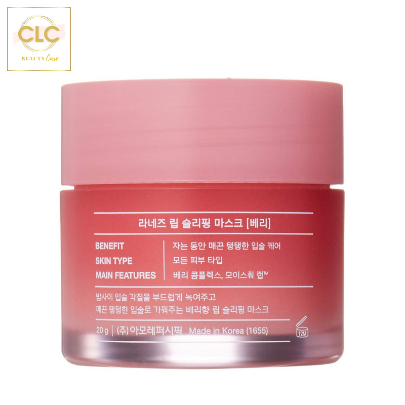 Mặt nạ dưỡng môi giúp làm dịu và dưỡng ẩm cho đôi môi mềm mại và căng mọng hơn. Chứa các thành phần giàu dinh dưỡng giúp lấy đi tế bào chết và dưỡng ẩm trên môi vào ban đêm mang đến đôi môi mềm mại và mịn màng hơn vào sáng hôm sau kết hợp với hương trái cây ngọt ngào tạo cảm giác dễ chịu.