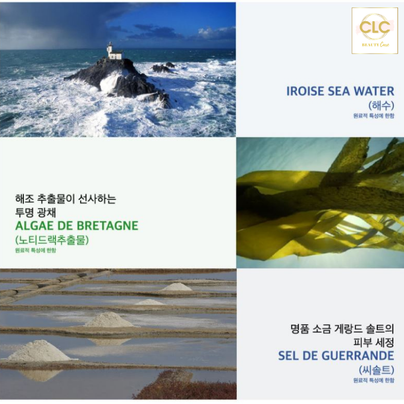 Với thành phần chứa Chiết xuất Tảo biển, Nước biển và Muối tại vùng Biển sạch của Pháp được UNESCO công nhận, cùng 10 loại tinh dầu và các thành phần được cấp bằng sáng chế cho khả năng làm sạch sâu, an toàn, cũng như khóa ẩm tức khắc cho làn da của bạn.